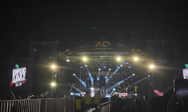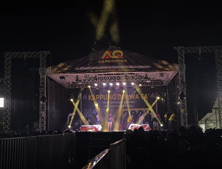 Pencahayaan yang kami sediakan menciptakan suasana hangat dan menarik, cocok untuk berbagai jenis acara di Sulbar.